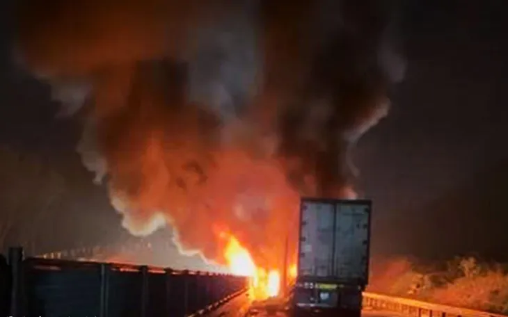 Sau va chạm, phần đầu xe đầu kéo bốc cháy, lửa lan nhanh sang xe tải và xe khách. Cả ba xe bị thiêu rụi, trong đó xe khách và xe tải cháy hoàn toàn, xe đầu kéo cháy phần đầu. May mắn, vụ việc không gây thiệt hại về người.
