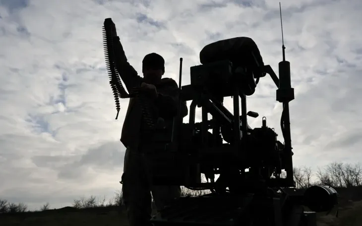 Một binh sĩ thử nghiệm thiết bị bay không người lái mặt đất tại vùng Zaporizhzhia, Ukraine, ngày 6/12/2025 (Ảnh: Ukraine’s 65th Mechanized Brigade/AP)