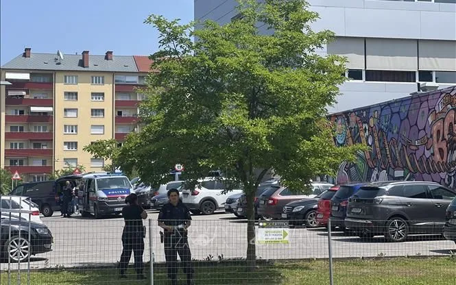 Cảnh sát gác tại hiện trường vụ xả súng trong trường học ở Graz, Áo, ngày 10/6/2025. (Ảnh: THX/TTXVN)