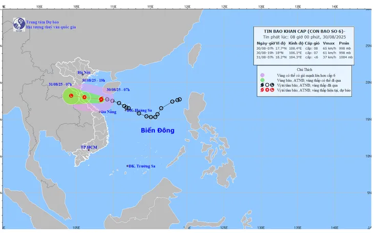 Ngày 30/8 – hết ngày 31/8: Thanh Hóa – TP Huế mưa to đến rất to (150–300mm, cục bộ >500mm).