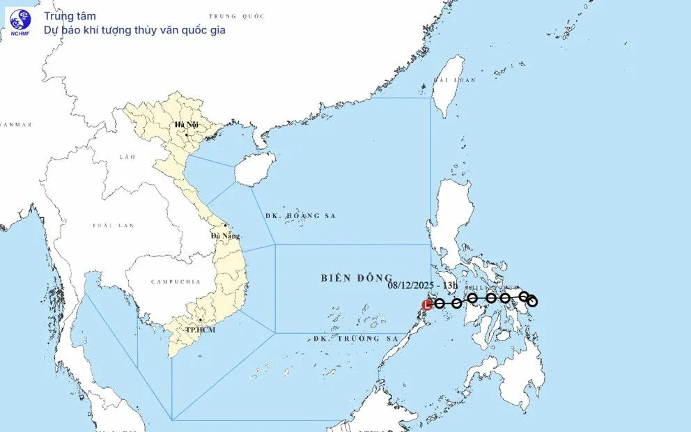 Theo Trung tâm Dự báo Khí tượng thủy văn Quốc gia, hồi 13h, vị trí trung tâm vùng áp thấp ở vào khoảng 11,6 độ Vĩ Bắc; 119,8 độ Kinh Đông, trên vùng ven biển phía Đông đảo Palawan (Philippines). Sức gió mạnh nhất ở trung tâm vùng áp thấp giảm xuống dưới cấp 6 (dưới 39km/h).