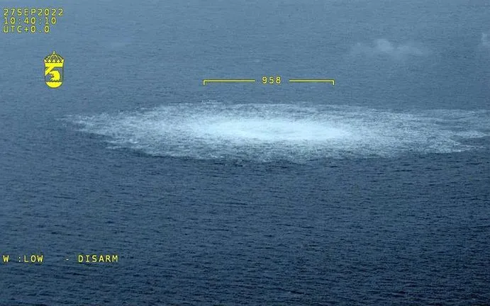 Đường ống Dòng chảy phương Bắc 2 trên biển Baltic bị hư hỏng, rò rỉ khí ra biển (Ảnh: Getty Images/Lực lượng Bảo vệ Bờ biển Thụy Điển)