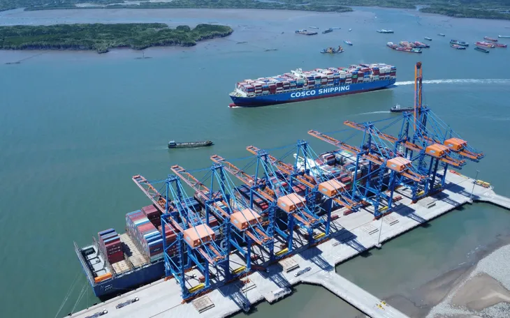 Tàu hàng vận chuyển hàng hoá tại hệ thống cảng Cái Mép - Thị Vải. Ảnh: Mạnh Kha