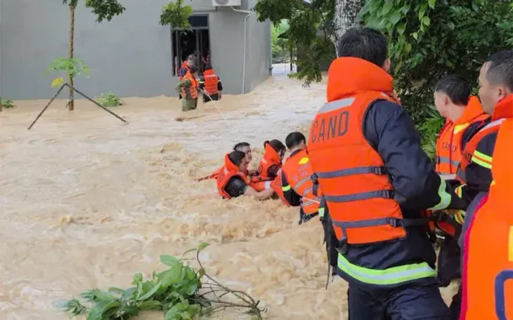 Trước đó, khoảng 5h20, do mưa lớn kéo dài, nước từ suối dâng nhanh khiến khu vực này bị ngập sâu. Gia đình anh Vũ Đức Thọ (42 tuổi) gồm 5 người trong đó có mẹ già 76 tuổi và hai con nhỏ chưa kịp di dời thì bị cô lập bởi nước lũ.