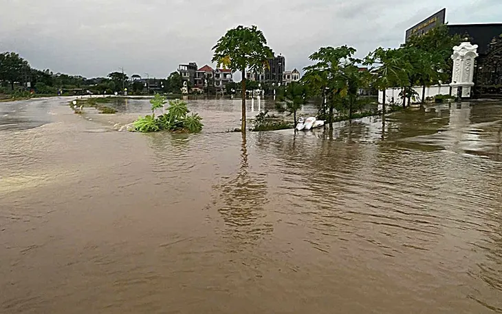 Khu vực gần Quảng trường 3/2, phường Bắc Giang bị ngập sâu sau mưa lớn kéo dài.
