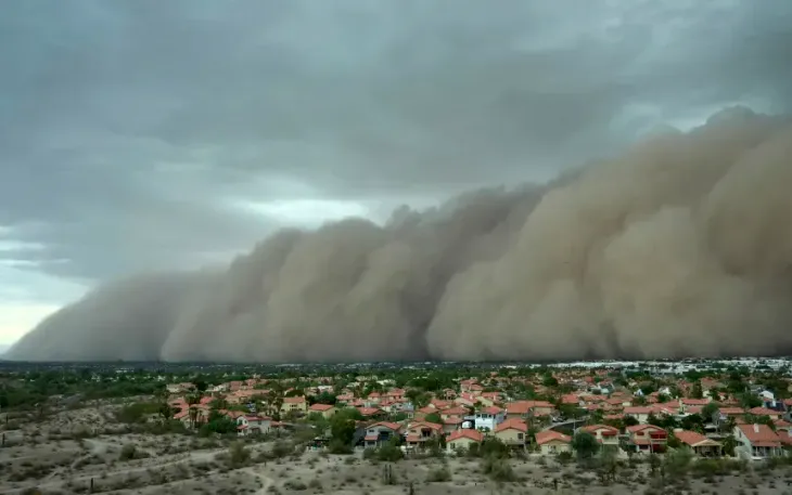 Những cơn bão bụi vốn không xa lạ với mùa gió mùa ở Arizona, nhưng trận bão lần này đặc biệt mạnh. Dông bão sụp đổ đã tạo ra luồng gió mạnh thổi ra ngoài, cuốn đất cát sa mạc thành một bức tường bụi khổng lồ cao hàng nghìn mét và kéo dài nhiều dặm, che khuất toàn bộ đường chân trời chỉ trong vài giây - tương tự như một trận bão tuyết mùa đông.