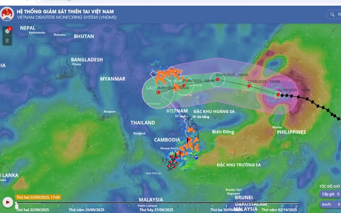 Đường đi của bão số 9 Ragasa. Ảnh: Diễm Hương