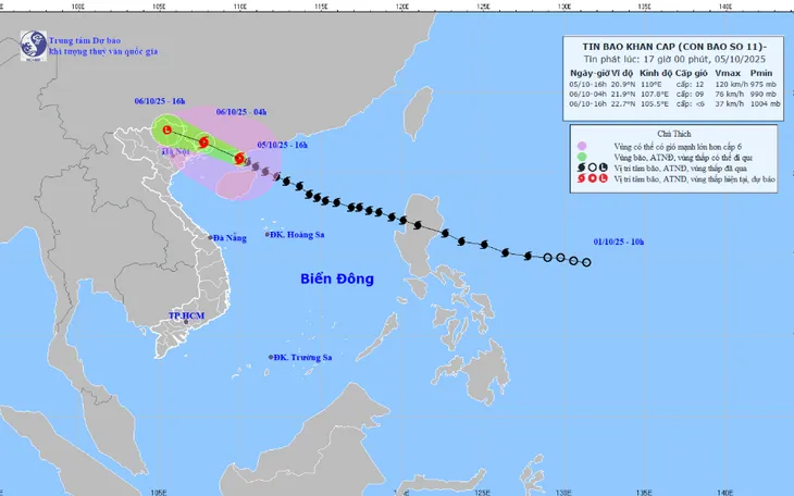 Khoảng sáng sớm mai (6/10), bão sẽ đi vào đất liền khu vực Quảng Ninh của nước ta và Quảng Tây, Trung Quốc, cường độ bão khoảng cấp 9 - 10. Sau đó bão tiếp tục đi sâu vào đất liền, suy yếu thành vùng thấp trên khu vực vùng núi phía Bắc.