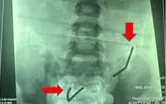 Khám lâm sàng ghi nhận bụng có đề kháng, X-quang phát hiện dị vật xếp thành chuỗi trong ruột non. Siêu âm cho thấy viêm ruột và viêm phúc mạc. Các bác sĩ đã hội chẩn khẩn và tiến hành phẫu thuật nội soi.