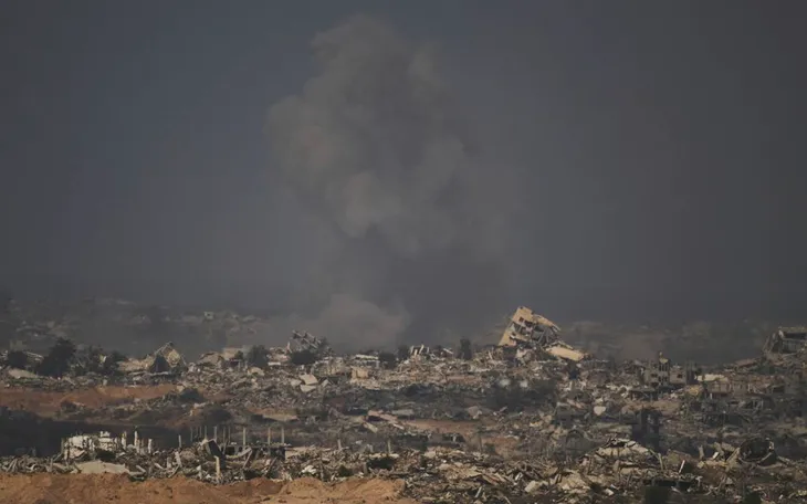 Khói bốc lên sau một cuộc không kích của Israel ở phía Bắc Dải Gaza, nhìn từ miền Nam Israel, ngày 16/9/2025 (Ảnh: AP)
