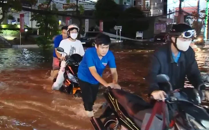 “Em dắt bộ xe từ trường về nhà, chắc cũng 5 cây số. Nước cao quá, xe bị tắt máy”, anh Bùi Gia Huy kể. Còn anh Phùng Tiền Anh Nhựt cho biết, với mực nước này, việc hỗ trợ người dân cũng vất vả hơn do áp lực nước khiến việc di chuyển nặng nề.