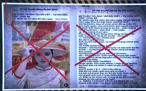Thông tin về cuộc thi "Áo dài Việt - Tự hào dân tộc 2025" với những lời quảng bá hấp dẫn như: giải thưởng hàng trăm triệu đồng, hợp đồng quảng bá hình ảnh cá nhân trị giá nửa tỷ đồng và cơ hội trở thành Đại sứ Áo dài Việt Nam là không chính thống và có dấu hiệu lừa đảo.