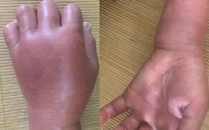 Sau khi bị ong đốt, bệnh nhân tự uống thuốc tại nhà 1 tuần không đỡ, nhập viện trong tình trạng tay sưng nề, nóng đỏ, đau nhức nhiều. Sau khi thăm khám, làm xét nghiệm và điều trị tích cực theo phác đồ, bệnh nhân ổn định sau 5 ngày.