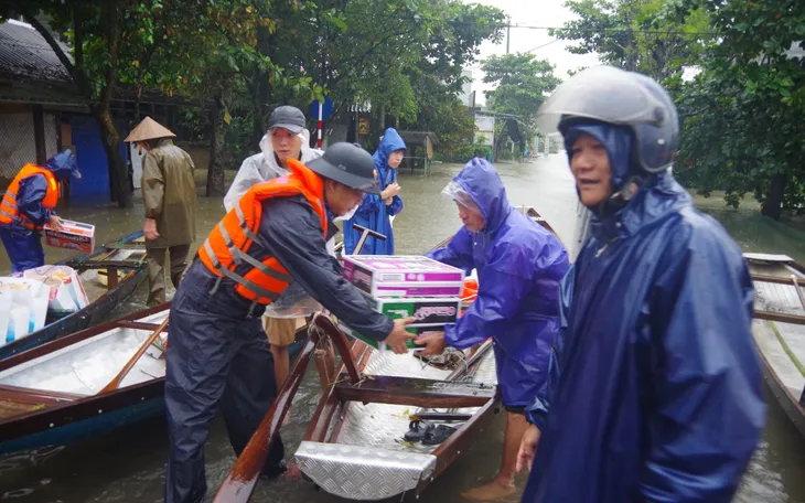 Đoàn công tác do Trung tá Trần Quang Vững - Đảng ủy viên Đảng ủy Vùng Cảnh sát biển 2, Bí thư Đảng ủy, Chính trị viên Hải đội 202 và ông Hoàng Khánh Hùng - Trưởng Ban Tuyên giáo và Dân vận Thành ủy Huế dẫn đầu, đã trao 30 suất quà gồm mỳ tôm, sữa, lương khô và các nhu yếu phẩm thiết yếu cho các hộ dân vùng ngập sâu.