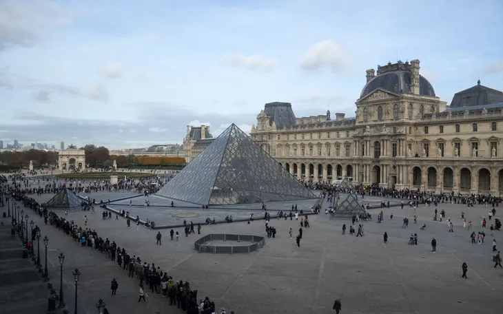 Du khách xếp hàng vào bảo tàng Louvre 3 ngày sau khi những món đồ trang sức lịch sử bị đánh cắp trong một vụ trộm táo bạo vào ban ngày, ngày 22/10/2025 tại Paris (Ảnh: AP)