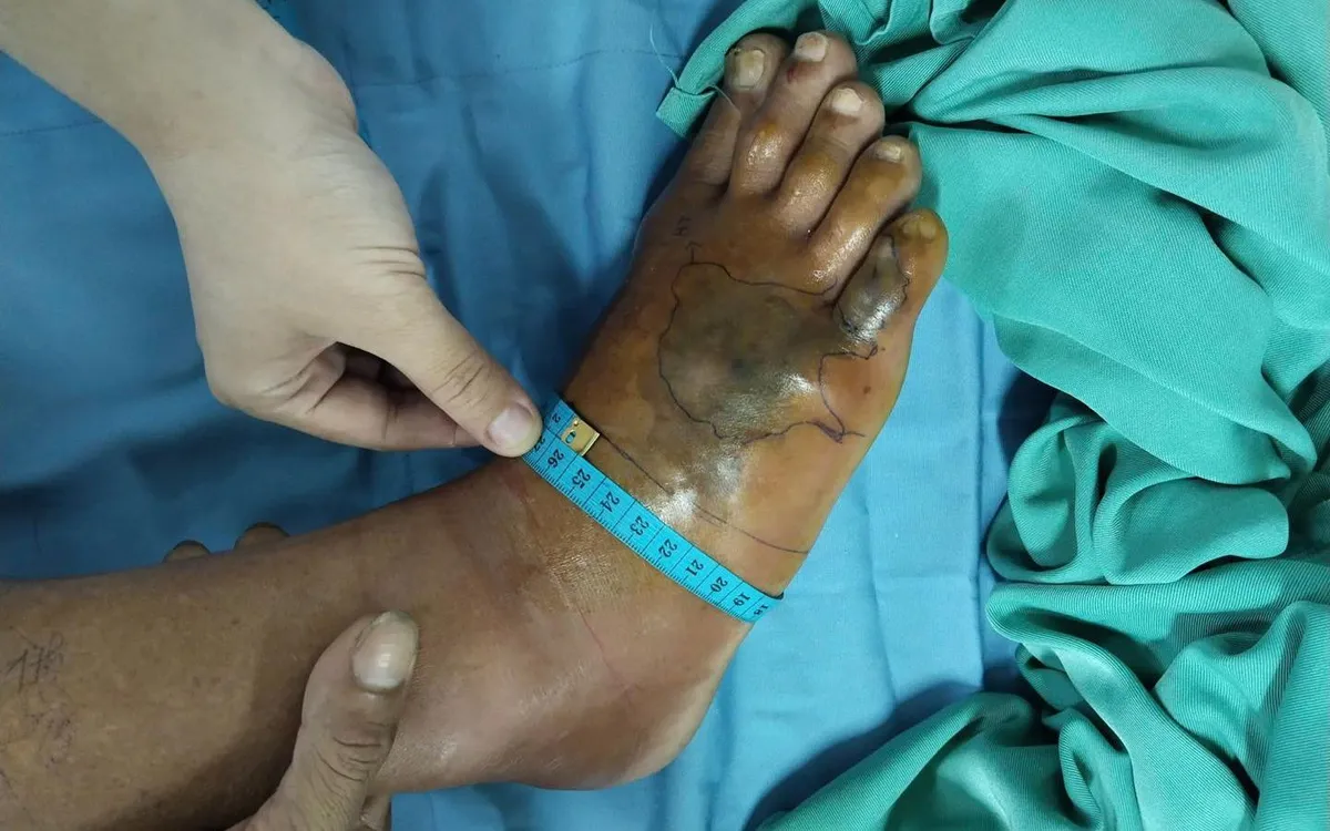 Khi vào Bệnh viện Đa khoa tỉnh Ninh Bình, bệnh nhân có dấu hiệu nhiễm độc nọc rắn: sưng nề, bầm tím, đau dữ dội, da niêm mạc nhợt, củng mạc mắt vàng. Kết quả xét nghiệm cho thấy rối loạn đông máu.