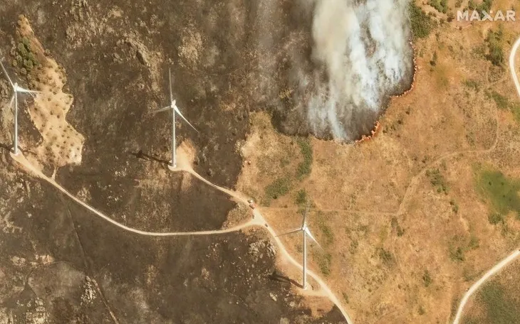 Ảnh vệ tinh cho thấy khu vực cháy rừng ở Trancoso, Bồ Đào Nha, ngày 12/8/2025 (Ảnh: Maxar Technologies qua AP)