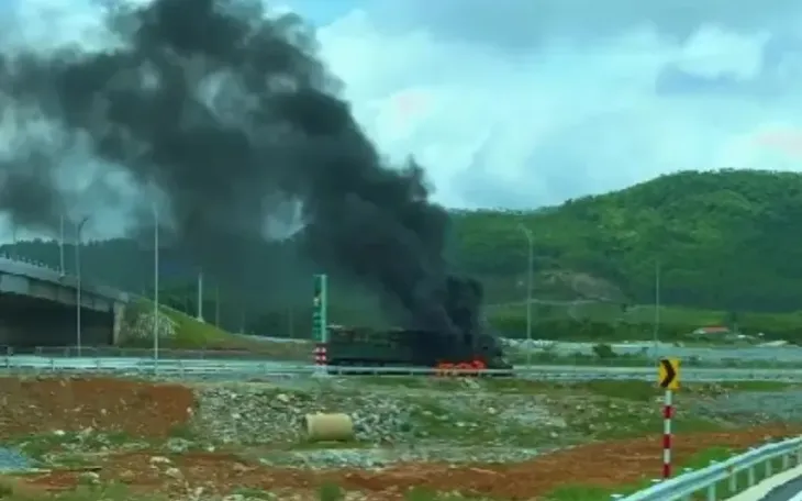 Khoảng 8h30 ngày 1/9, trên tuyến cao tốc Hàm Nghi – Vũng Áng đoạn nút giao Kỳ Trung, một xe đầu kéo kéo theo rơ-mooc chở phế liệu bất ngờ bốc cháy dữ dội.