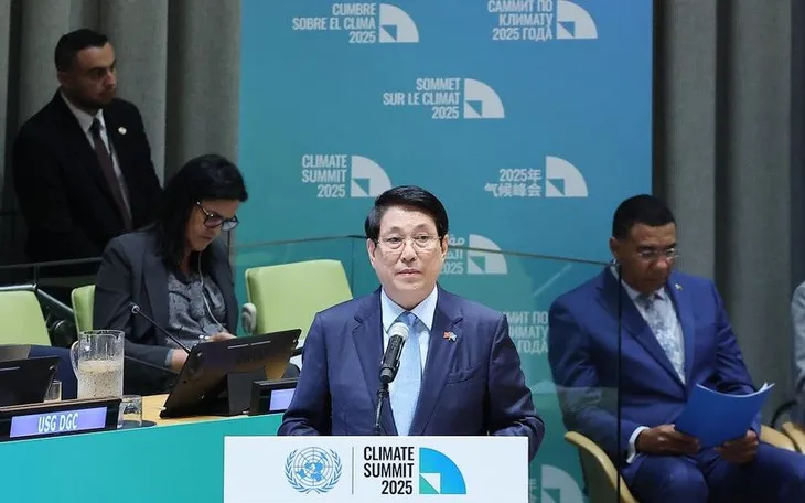Chủ tịch nước Lương Cường phát biểu tại sự kiện cấp cao toàn cầu đặc biệt về Hành động khí hậu. (Ảnh: TTXVN)