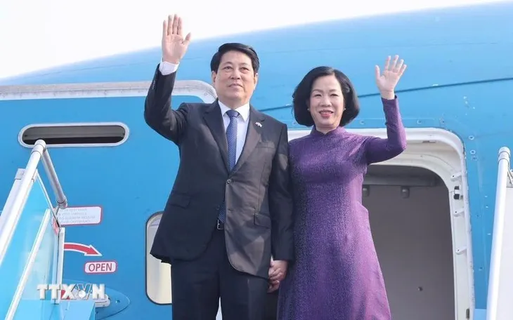 Chủ tịch nước Lương Cường và Phu nhân rời Hà Nội, lên đường dự Phiên Thảo luận chung cấp cao Đại hội đồng Liên hợp quốc Khóa 80, kết hợp hoạt động song phương tại Hoa Kỳ. (Ảnh: Lâm Khánh/TTXVN)
