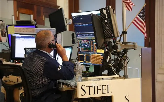 Giao dịch viên tại sàn chứng khoán New York, Mỹ. Ảnh: THX/TTXVN
