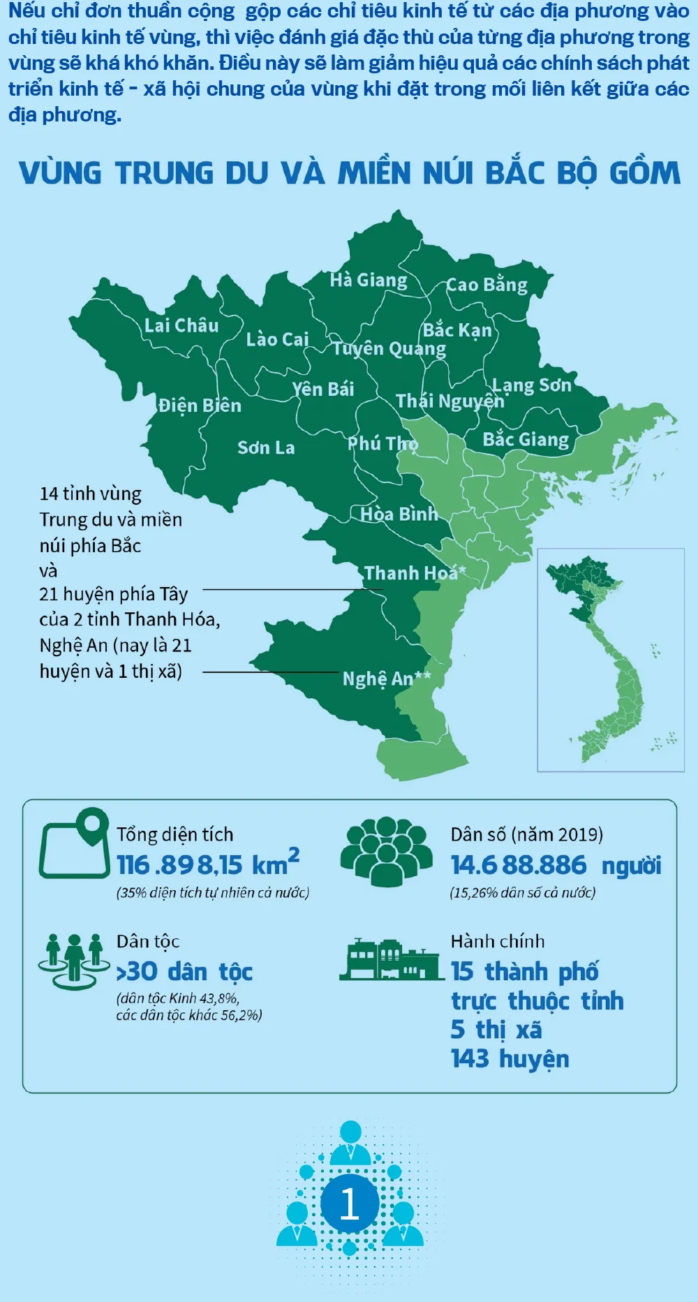 Trong các vùng kinh tế - xã hội, vùng Trung du và miền núi phía Bắc còn gặp nhiều khó khăn, bất lợi trong phát triển kinh tế-xã hội nói chung và trong thúc đẩy liên kết vùng nói riêng. Nhiều tiềm năng, lợi thế của vùng vẫn chưa được khai thác hợp lý và phát huy hiệu quả. Vùng Trung du và miền núi phía Bắc vẫn là “vùng trũng” trong phát triển và là “lõi nghèo” của cả nước.