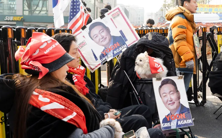 Nhiều người dân Hàn Quốc thể hiện sự ủng hộ đối với ông Yoon trong khi phiên tòa diễn ra hôm 16/1/2026 (Ảnh: Reuters)