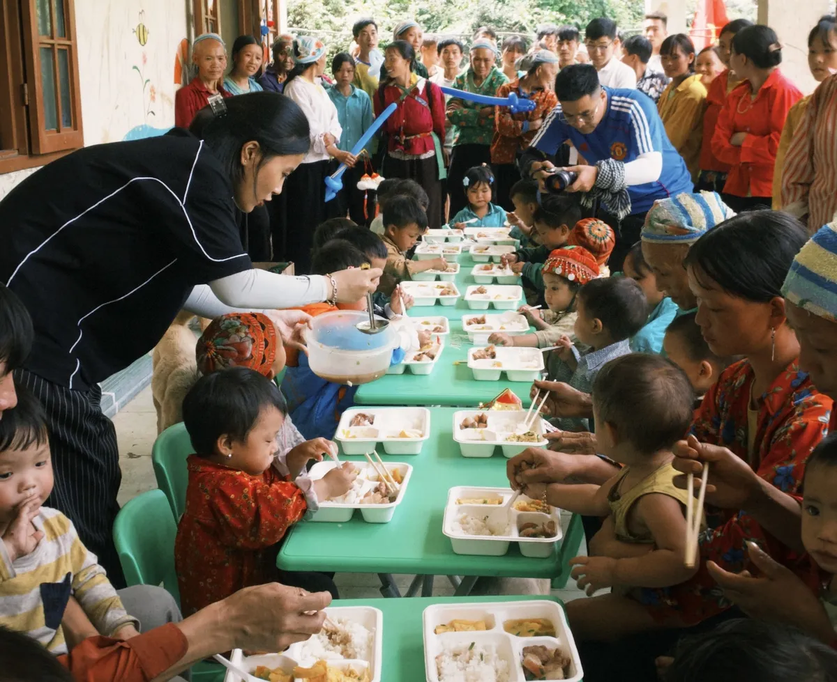 DCOM còn nấu bữa cơm dinh dưỡng cho các em. Tại vùng biên viễn này không thể trồng lúa nước vì địa hình núi đá. Dân bản chỉ có thể tận dụng đất có hạn trong các hốc đá để trồng ngô. "Khác với ngày thường chỉ ăn cháo ngô qua bữa, hôm nay tụi trẻ được ăn cơm, điều thật hiếm hoi ở đây", thầy Thành xúc động.