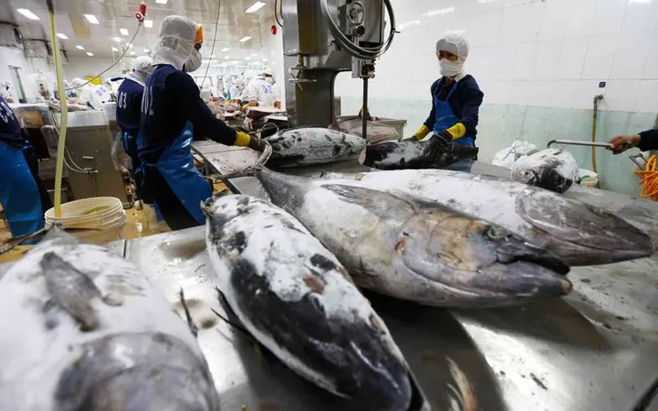 Chế biến sản phẩm cá ngừ đại dương xuất khẩu. (Ảnh: Vũ Sinh/TTXVN)