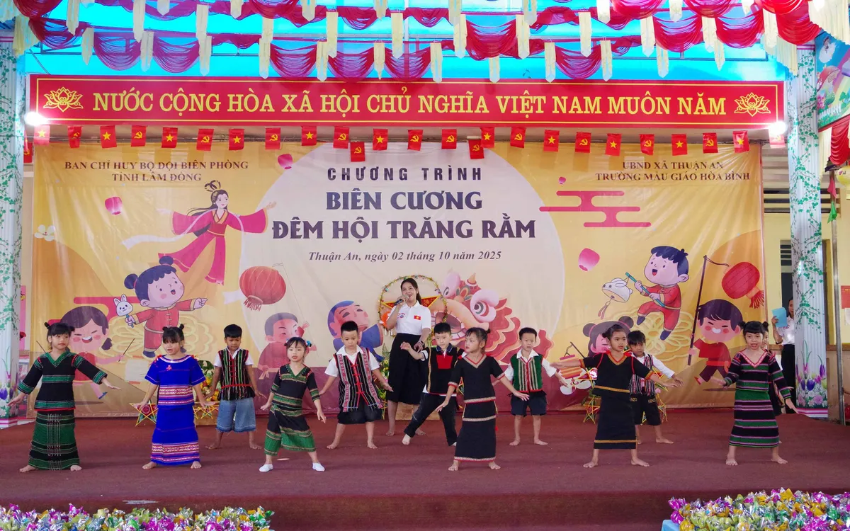 Tại Trường Mầm non Hòa Bình (Bon Sa Pa, Bu Đắk, xã Thuận An, tỉnh Lâm Đồng), Bộ Chỉ huy Bộ đội Biên phòng (BĐBP) tỉnh Lâm Đồng phối hợp cùng chính quyền địa phương và các mạnh thường quân tổ chức chương trình "Biên cương - Đêm hội trăng rằm".