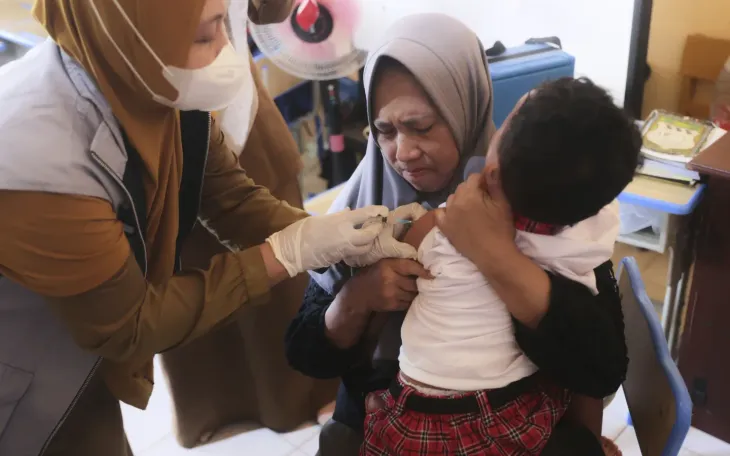 Indonesia triển khai chiến dịch tiêm chủng vaccine sởi khẩn cấp (Ảnh: AP)