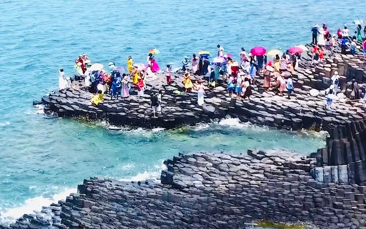 Tại Di tích quốc gia đặc biệt gành Đá Đĩa, đại diện Ban quản lý di tích cho biết, trong hai ngày cuối tuần và ngày 1/9, lượng khách khoảng từ 3.000-5.000 lượt người/ ngày.