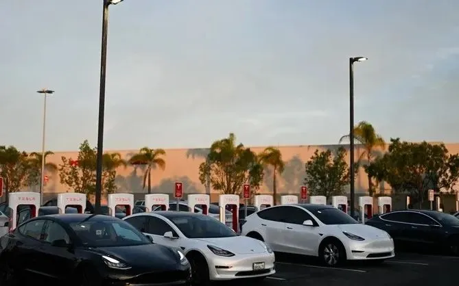 Các xe ôtô điện của Tesla tại trạm sạc ở California, Mỹ. (Ảnh: AFP/TTXVN)
