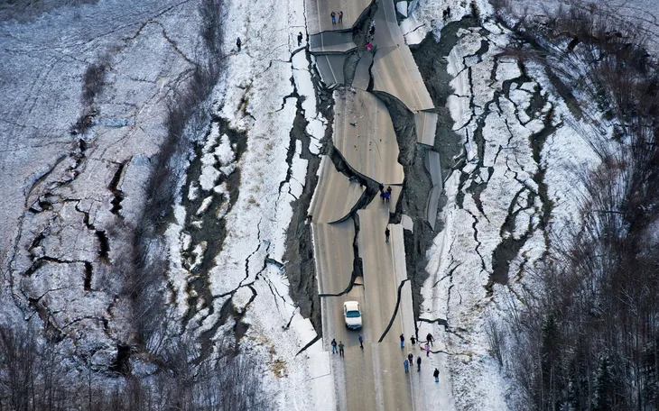 Thiệt hại trên đường Vine, phía Nam Wasilla, Alaska, sau trận động đất xảy ra tại khu vực này vào ngày 30/11/2018 (Ảnh: AP)