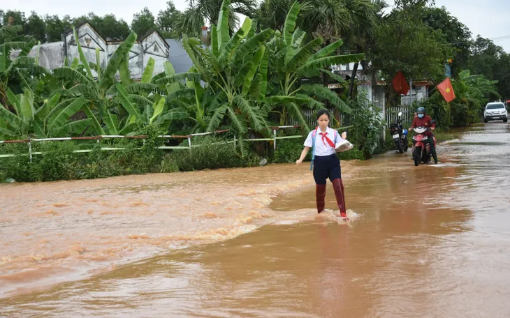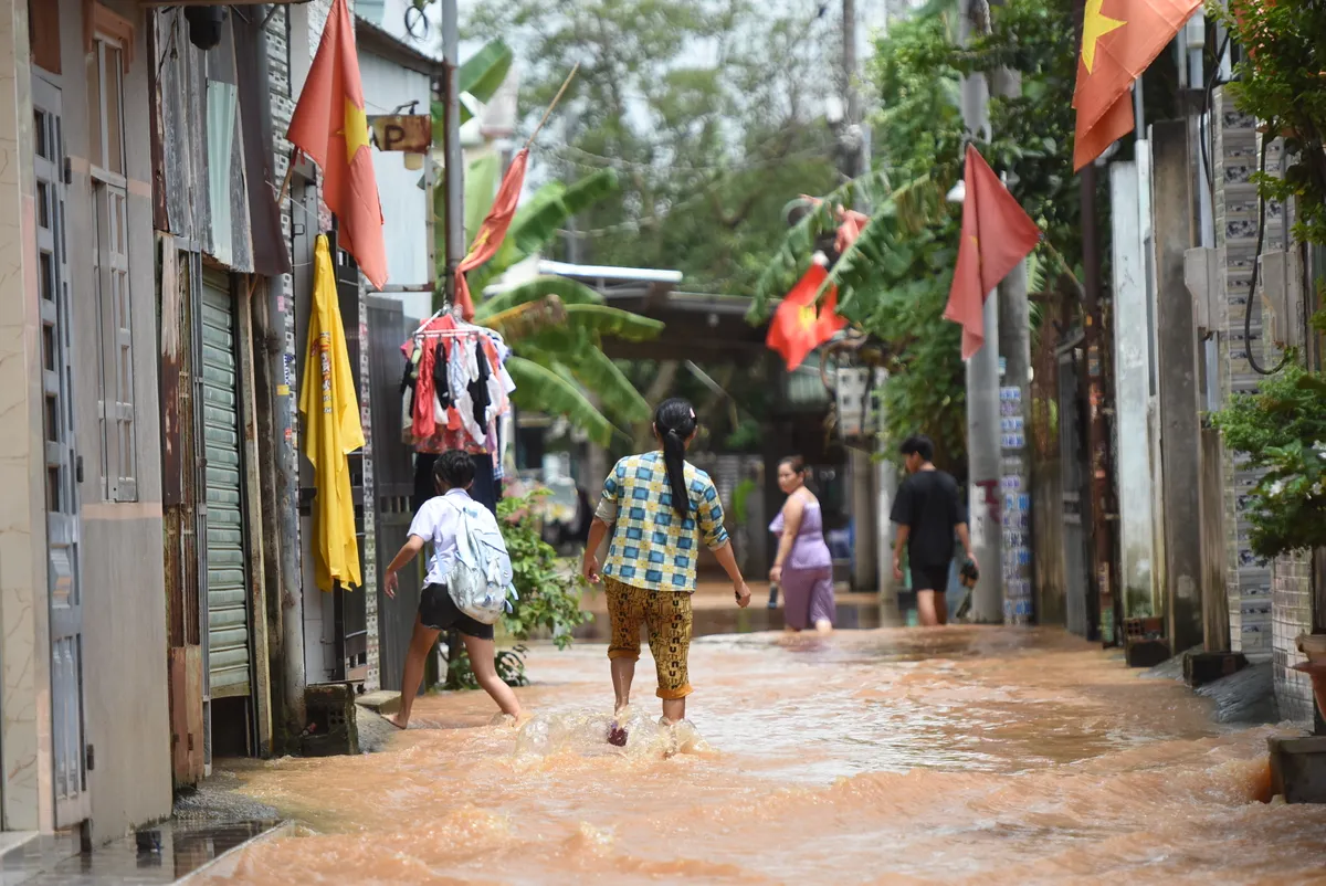 Người dân tại phường Phước Tân, tỉnh Đồng Nai phải lội nước đi lại. Ảnh: A.X.
