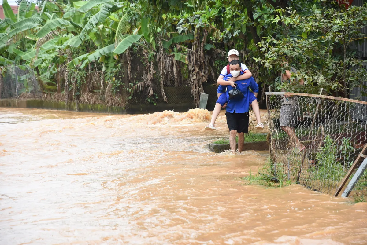Nhiều hộ dân lo lắng nên trong đêm di dời đi chỗ khác ở tạm, chờ nước rút mới về nhà dọn dẹp. Còn các em học sinh đi lại đều có cha mẹ đi kèm qua các điểm ngập nặng.