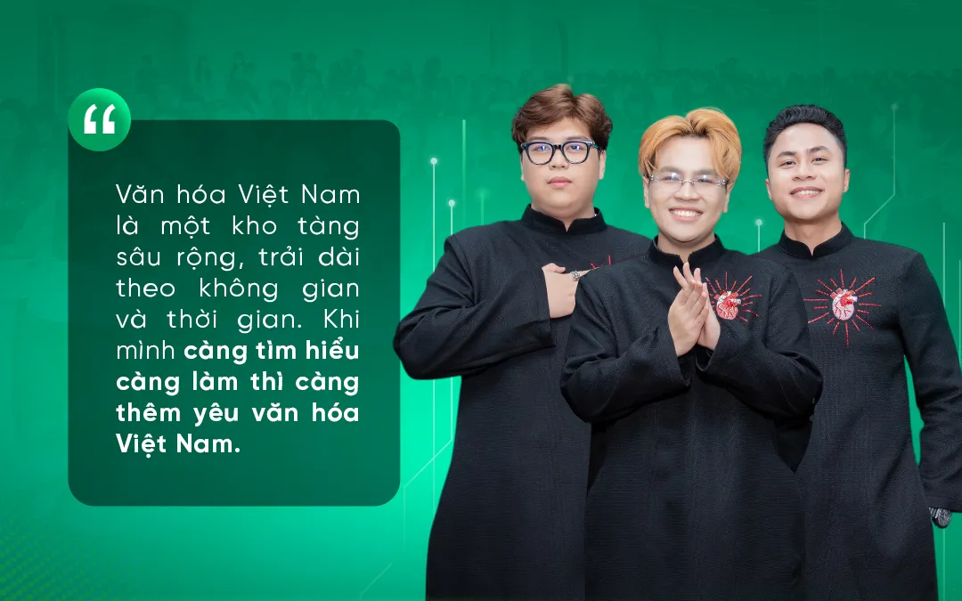 Thịnh Kainz, Kata Trần và Tùng Cedrus cũng chia sẻ nỗi băn khoăn trước sự phát triển mạnh mẽ AI với tốc độ xử lý nhanh, khả năng lưu trữ khổng lồ khiến người làm sáng tạo đôi khi thấy chênh vênh. Nhưng họ cũng nhấn mạnh: "AI có thể lưu trữ vô hạn, xuất dữ liệu như một DJ, nhưng AI sẽ không bao giờ có được cái gọi là 'giác quan thứ sáu'. Với chúng tôi, văn hóa chính là trái tim và là công cụ lớn nhất giúp làm nghề sáng tạo". Thành viên khác bổ sung: "Kho tàng văn hóa Việt Nam vô cùng phong phú và đa dạng. Càng tìm hiểu, chúng tôi càng yêu và càng muốn đưa bản sắc ấy vào trong âm nhạc".