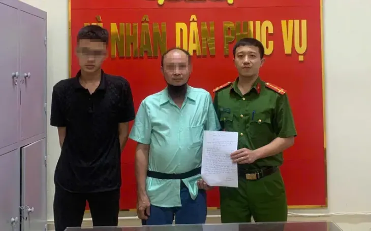 Người thân đến đón con và gửi thư cảm ơn lực lượng Công an xã Hưng Nguyên và Trạm Cảnh sát giao thông Diễn Châu.