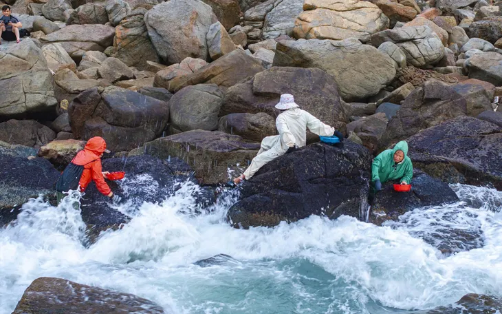 Hành trang của họ chỉ là con dao nhỏ, chiếc bao tải và đôi tay chai sần, nhưng hiểm nguy luôn rình rập. Những mỏm đá trơn trượt, hà bám sắc nhọn cùng những con sóng bất ngờ có thể quật ngã người đi hái rong bất cứ lúc nào.