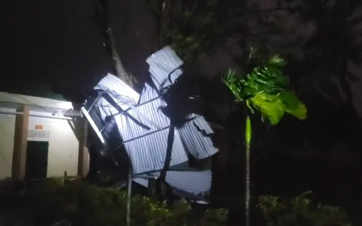 Đồn biên phòng Roòn tại xã biển Phú Trạch, gió bão quật liên hồi, rít mạnh, tôn bay tốc mái.