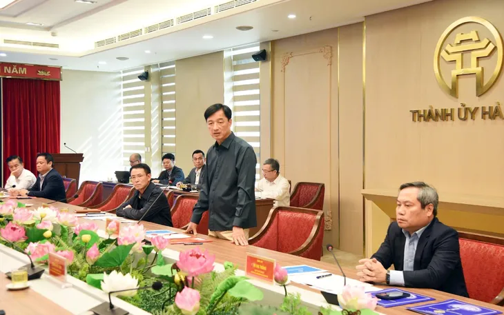 Bí thư Thành ủy Hà Nội Nguyễn Duy Ngọc phát biểu kết luận chỉ đạo tại buổi làm việc.