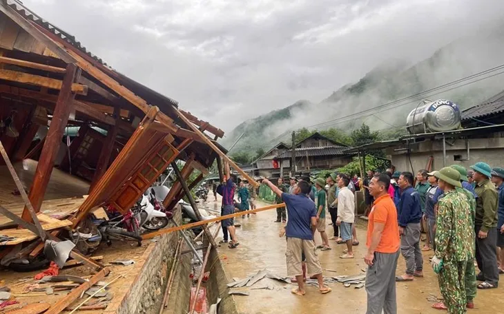 Nhà của một số hộ dân bị đổ sập do sạt lở đất gây ra. Ảnh: QĐND
