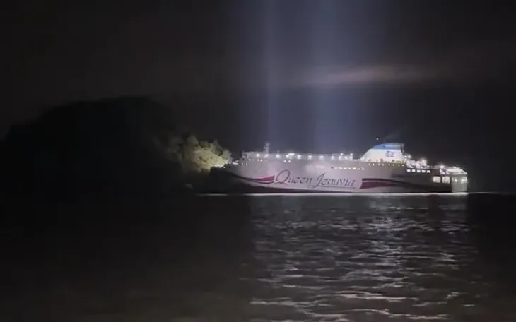 Phà Queen Jenuvia mắc cạn gần đảo Jangsan thuộc huyện Sinan ngày 19/11 (Ảnh: Cảnh sát biển Hàn Quốc)
