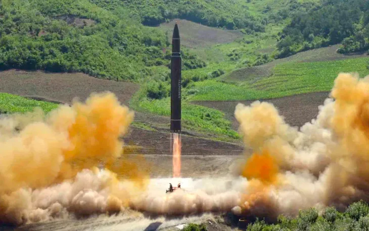 Triều Tiên được cho là đang phóng thử tên lửa đạn đạo liên lục địa Hwasong-14, vào ngày 4/7/2017 (Ảnh: AP)