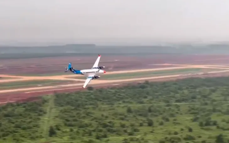 Máy bay Beech King Air 350ER số hiệu B350 thực hiện bay hiệu chuẩn tại Sân bay Long Thành trong ngày 26/9. Video: ACV.