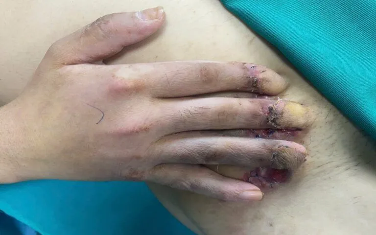 Sau 3 tuần nuôi cấy, mạch máu nuôi các ngón tay phục hồi tốt, kíp mổ tiếp tục tách ngón tay khỏi thành bụng, tái tạo da che phủ. Sau phẫu thuật, vết thương hồng hào, khô, bàn tay phục hồi dần chức năng vận động.