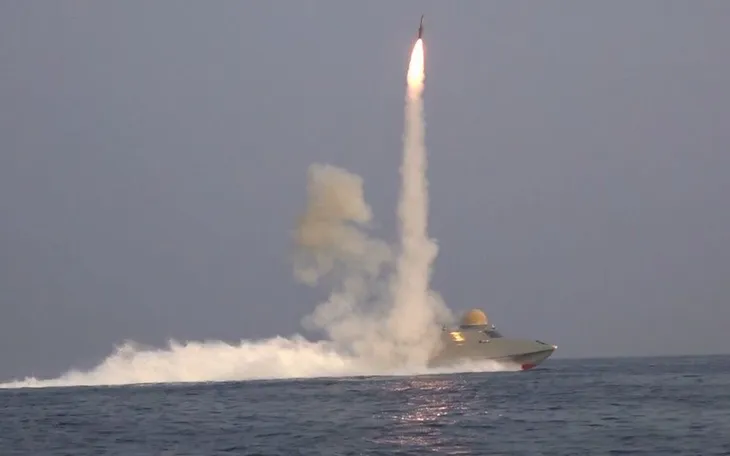 Tên lửa được phóng trong khuôn khổ cuộc tập trận hải quân của Lực lượng Vệ binh Cách mạng Iran (Ảnh: AP)