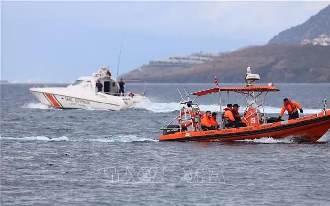 Lực lượng cứu hộ tìm kiếm người di cư trong vụ chìm thuyền ngoài khơi huyện Bodrum, tỉnh Mugla, Thổ Nhĩ Kỳ ngày 24/10/2025 (Ảnh: Anadolu Agency/TTXVN)