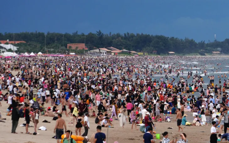 Biển Vũng Tàu chật cứng khách du lịch. Ảnh: Tùng Lâm
