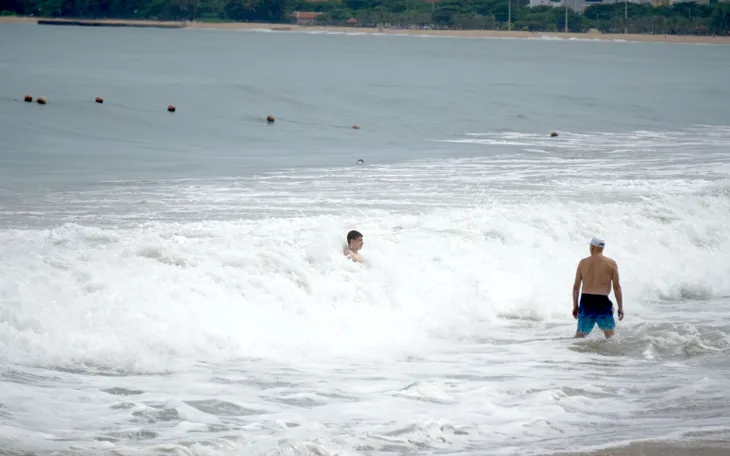 Sóng lớn nhưng nhiều du khách vẫn tắm biển.